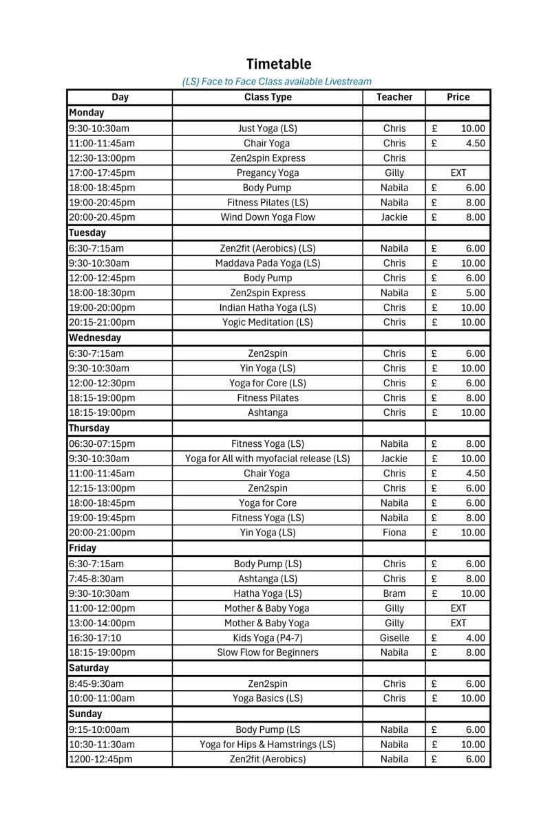 Block of 10 Classes – £50